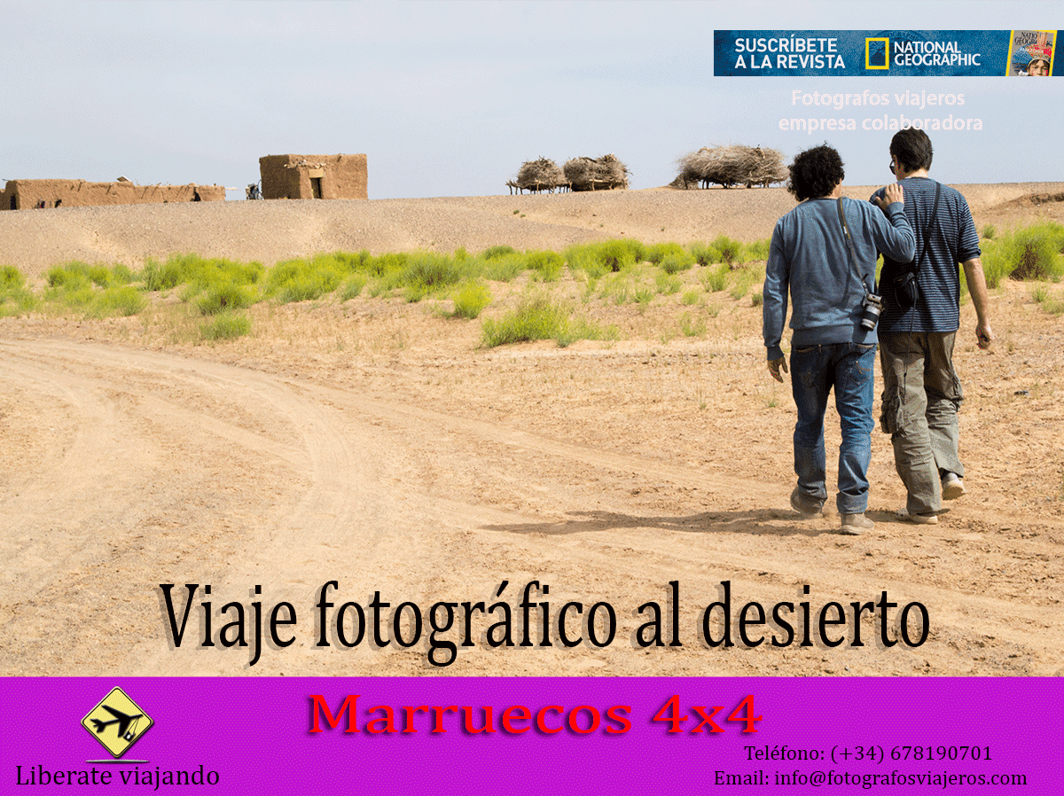 A diferencia de otros viajes de Fotógrafos viajeros donde los programas los destinos y servicios son realizados a través de agencias. Los viajes por Marruecos es completamente a pie de Calle. donde los traslados,servicios se realizan en los transportes públicos de Marruecos aumentando considerablemente el nivel de aventura y una rica mezcla en el entorno y la vida del país. El itinerario podrá sufrir variaciones de acuerdo con el criterio del experto ya fuera debido a razones de oportunidad fotográfica o climatología o Seguridad. Es importante reseñar que los hoteles no siempre son equiparables a los estándares de nuestro país y las infraestructuras pueden comportarse de forma irregular. Entendemos que la selección de las residencias forman parte del diseño de la expedición con el objetivo de mantenernos cercanos a los eventos, los ambientes locales y las oportunidades fotográfica. Los viajes de Fotógrafos viajeros están pensados para disfrute y aprendizaje, tanto de fotografía como experiencias de desarrollo personal. Los miembros de Fotógrafos viajeros aparte de estar dotados para la enseñanza de fotografía se encuentran profesionales titulados en distintas áreas como psicología , pedagogía e historia que le ayudaran y asesoraran a lo largo del viaje. Los cursos de fotografía son altamente recomendables para aquellos que quieran iniciarse o desarrollarse en la fotografía . por ello esta pensado desde que aprendas desde cero para facilitar el aprendizaje de los nuevos aficionados y posiblemente futuros profesionales.Las mil caras de marruecos